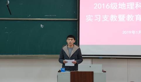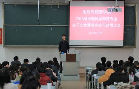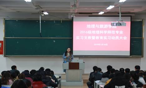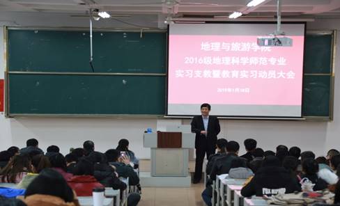 于1月18日下午在A206召开2016级地理科学师范专业实习支教暨教育实习动员大会。院党委书记胡长春、院长张全景、党委副书记刘伟出席,副院长吴军主持动员大会,全体指导教师、2016级地理科学师范专业辅导员、班主任和全体学生参加了动员大会。