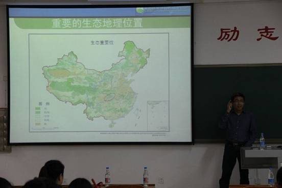 李月臣教授从研究区段的区域功能定位、生态环境遥感应用、科学研究服务地方发展三个方面展开报告。他以丰富的图表、精巧的模型、深刻分析探讨了生态遥感在三峡库区(重庆段)的生态环境敏感性综合评价、生态服务功能重要性评价、植被净初级生产力遥感估算、人居环境适宜性评价及其在重庆市生态功能区划中的应用等问题。报告会接近尾声时,李教授现场师生提出的问题一一耐心解答。