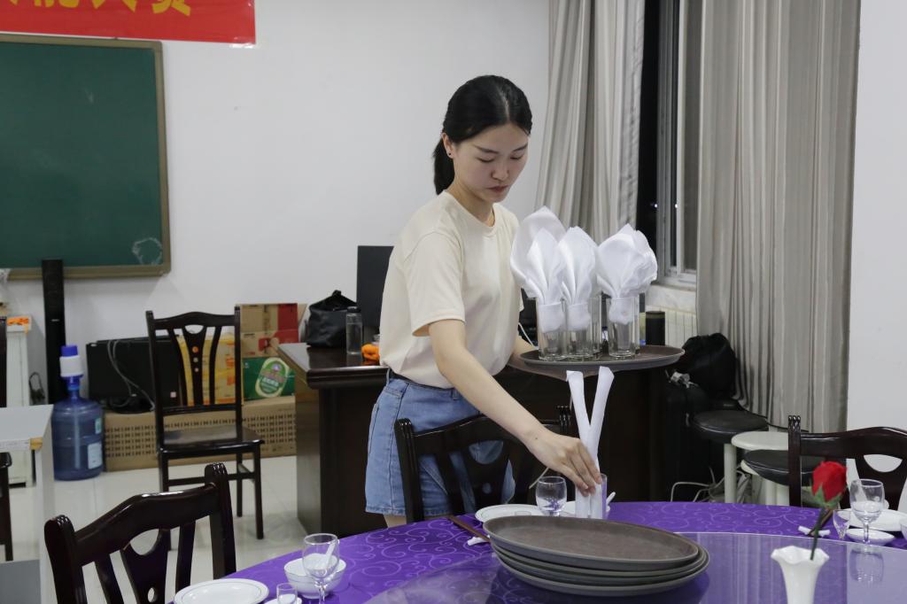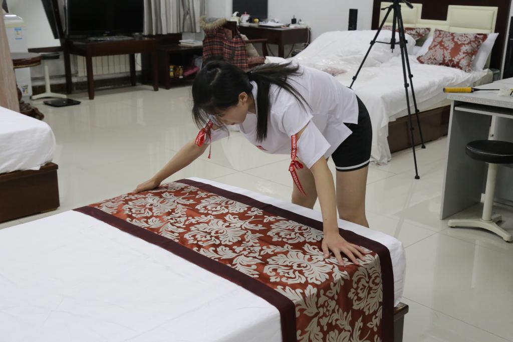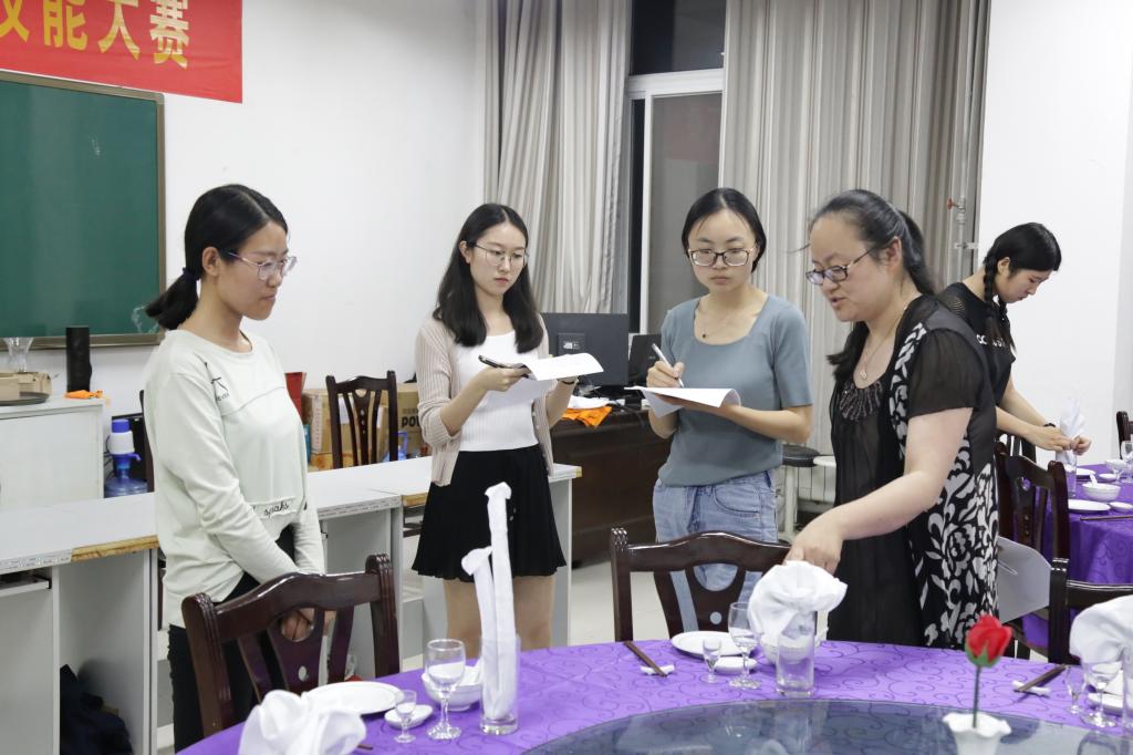 举行了实验技能大赛决赛之中餐宴会摆台与西式铺床,本次比赛由旅游管理专业闫颖、张岩君、邓薇、孔令艳四位老师和三名研究生担任评委。经过初赛的角逐,两个比赛项目分别有20名学生进入决赛。 比赛开始前,由两位评委老师分别向大家介绍比赛规则,比赛限时十分钟。选手们认真专注,操作熟练,无不展现出麻豆在线