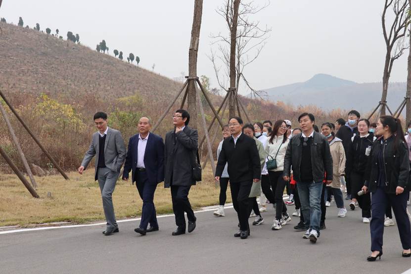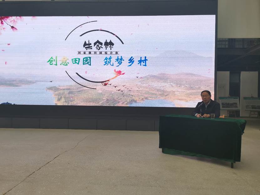 随后,同学们乘车前往朱家林国家级田园综合体项目区,我校1982级校友、沂南县政府党组成员、蒙山彩蒙景区管委会党委书记黄树田、山东朱家林乡建集团公司董事长徐从江热情接待了实习团队。黄树田书记围绕“创意田园、筑梦乡村”,就对朱家林的发展缘由、运行特色和发展前景进行了深入介绍和剖析。黄书记谈到,朱家林社区突出“文创+旅游+生态建筑”的深度融合,以文创产业活化乡村,重点打造以生态建筑、乡土文创、自然农业、青创众筹、创意策划等永续环保项目,并建设了青年创客中心、乡村美学馆、沂蒙生态建筑实验基地等工程,为乡村振兴提供了现实路径。