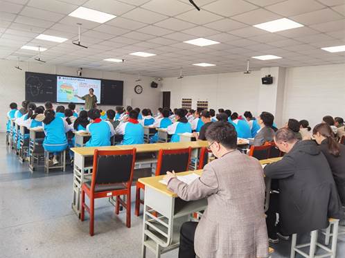 副院长吴军教授、教育实习领导小组成员刘志刚、贾维花、李俊莉、刘庆果和张岩君、李瑞平、王云倩、李小苗等教育实习指导教师于4月27日前往日照港中学,与实习学校指导教师和实习同学观摩了江锦彤同学的课堂授课,并在课后进行了集体评课。日照港中学初一地理教研组组长李文宇老师和任课教师葛玉娜老师一同参加了听课和评课。