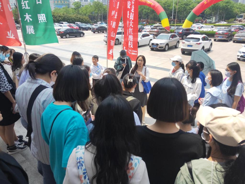 本次实践调研中,张瑜邀请本届茶博会主办方李霞经理和日照市会展协会张皓然老师为同学们进行详细地讲解。实践活动伊始,李经理对同学们的到来表示热烈的欢迎,并就本届茶博会的展会形式、展会内容、展位大小、展位材质,以及部分展位产品等具体内容进行着重介绍。随后,张瑜就新冠肺炎疫情对线下会展的影响、日照市近年来会展发展情况,以及茶博会发展趋势进行细致地分析,并表示愿意为同学们提供更多参展参会的机会。