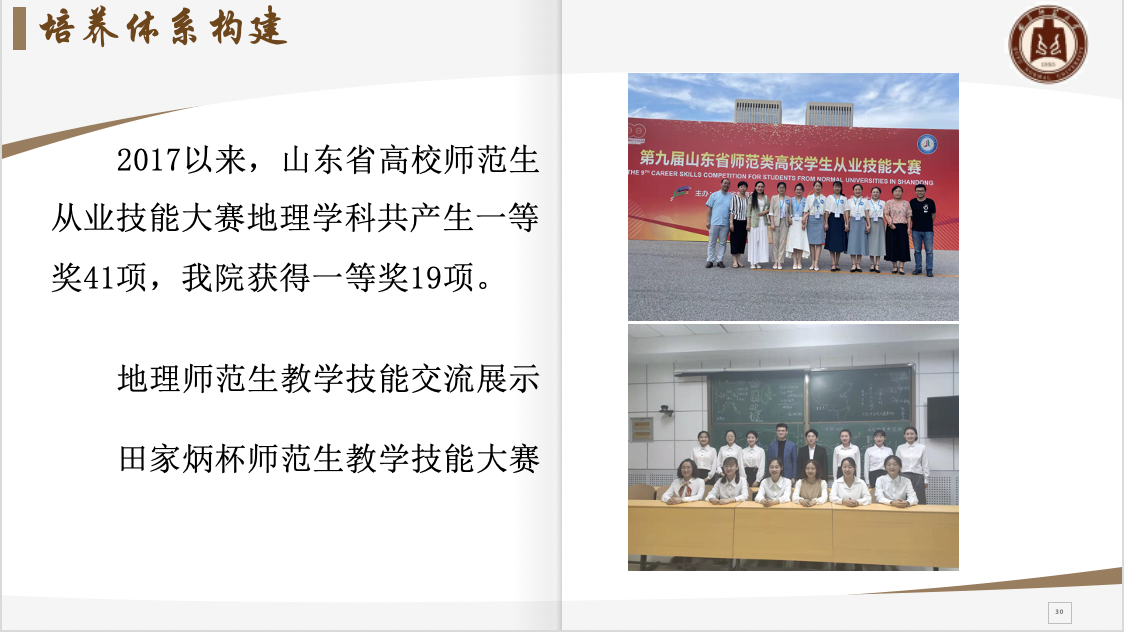 地理师范生的地理教学技能和教育理念不断进步,在全国地理师范生教学技能交流展示、田家炳杯师范生教学技能大赛、山东省高校师范生从业技能大赛、山东省地理教学技能大赛等一系列国家级和省级教学技能大赛中取得优异成绩。在该培养体系下,麻豆在线