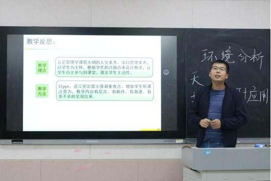 为进一步落实党的二十大精神和学校第九次党代会要求,提升教师教学能力和业务水平,鼓励广大教师更新教育理念、掌握现代教学方法,根据学校要求和学院比赛方案,11月19日,学院于S214举办2022年青年教师教学比赛决赛。经教研室预赛推荐,14名青年教师参加了决赛。学院领导和全体教职工全程观摩了比赛。
