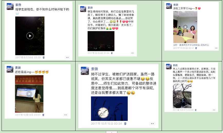 选手初次参加从业技能大赛,也是李剑老师初次指导该项大赛。大赛在国庆节前夕才给出课题范围,到出发比赛只有两周多的准备时间,所以整个国庆节(亦是中秋节)都没有休息,陪着田立鑫同学做设计、改教案、改课件、试讲......几乎每天都熬到深夜(社交平台截图可见一斑)。10月17日是出发比赛的日子,而16日夜里李剑老师还在陪着学生修改教案熬夜至凌晨三点。