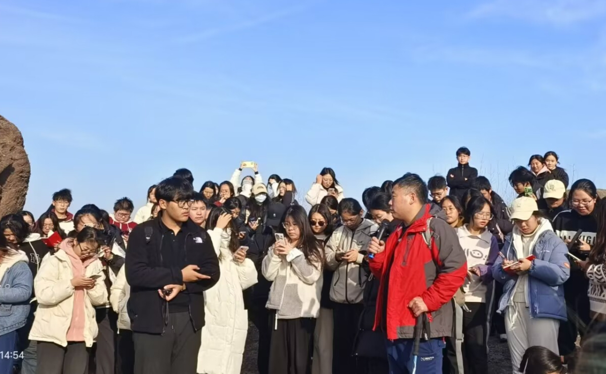 人才培养方案,进一步加深地理科学(师范)专业学生对《普通地质学》课堂知识的理解,提高学生野外实践能力,12月8日,2024级地理科学(师范)专业本科生前往日照市莒县长岭镇白土沟村、临沂市临沭县曹庄镇岌山地质公园以及石门镇小岱村丹霞地貌景区开展《普通地质学》野外实习。学院党委副书记刘伟,实习指导老师刘飞、马振华、汪瑶,于深洋、张鑫、李永格,2024级辅导员公惟莹、带队实习。