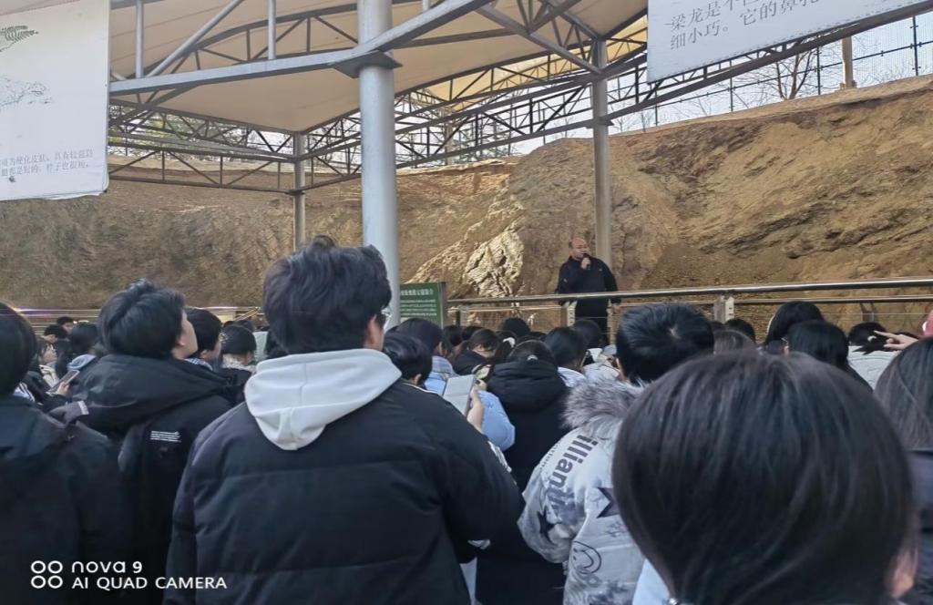 实习第二站,师生们来到临沂市临沭县曹庄镇岌山地质公园。在这里,同学们观察到了恐龙足迹、中生代砂岩、波痕、雨痕、发育的大型褶曲以及接触关系复杂的断层等地质现象。于深洋老师向大家介绍不同的恐龙足迹,以及各种地质构造的成因和发育过程,随后,同学们自由参观,并在老师的指导下完成拍照记录的任务。这一站,同学们通过观察岌山地质公园白垩系紫色砂岩沉积层面构造以及褶皱与断层,将抽象的知识具象化,加深了对这些地质现象的理解。