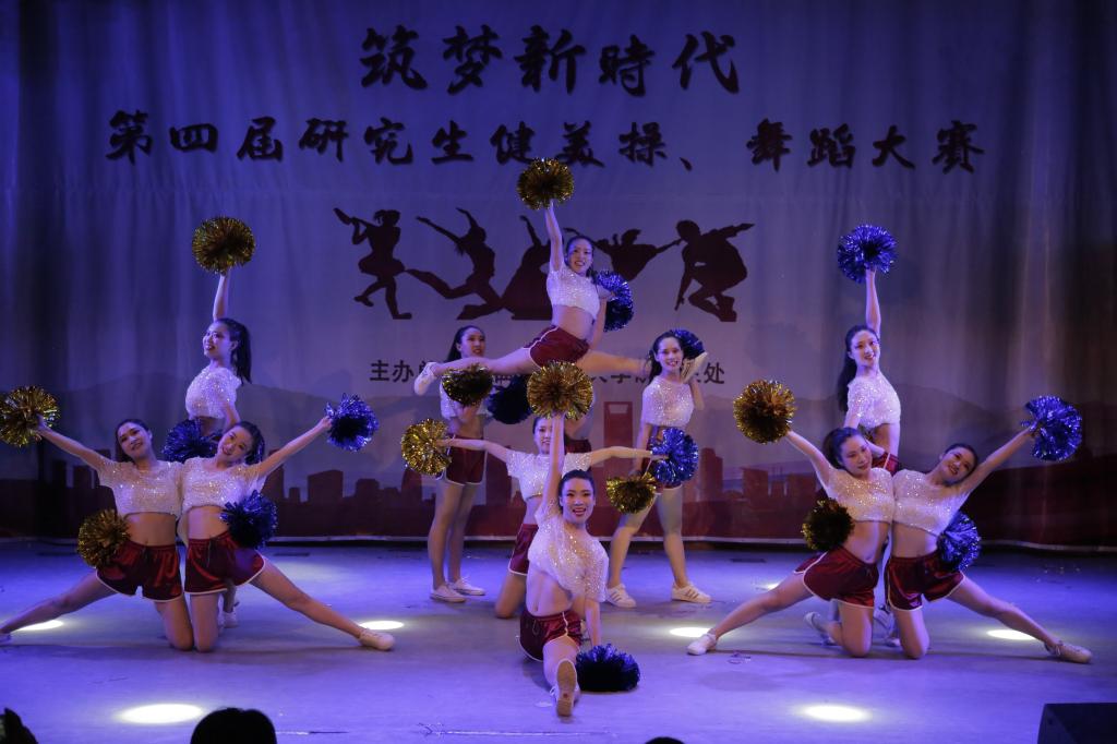 研究生青春洋溢、积极进取的精神面貌充分展现出来。在极富节奏感的音乐下,每一个动作都是那么激情四射,动感十足,迸发出青春与活力,全场的观众被他们的热情带动,爆发出阵阵的掌声和欢呼声。
