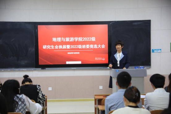 参与竞选的同学根据研究生会换届选举竞选要求,依次上台进行3分钟竞选演讲。竞选环节中,各位参选人员满怀信心和激情,以端庄大方的仪态和饱满的精神状态走上舞台,就自己的基本情况、对工作岗位的认知、竞选原因以及工作设想进行了演讲。随后进行了2022级班委竞选,2022级地理学班、学科教学(地理)班、旅游管理班参与竞选的同学依次上台以PPT、演讲等多样形式,展示自我蓬勃风采。经过班级同学民主测评等环节,最终确定2022级硕士研究生各班班委人员。