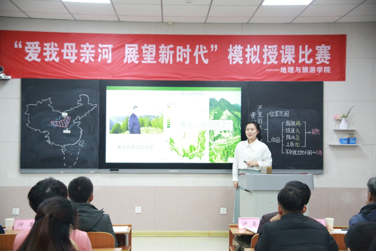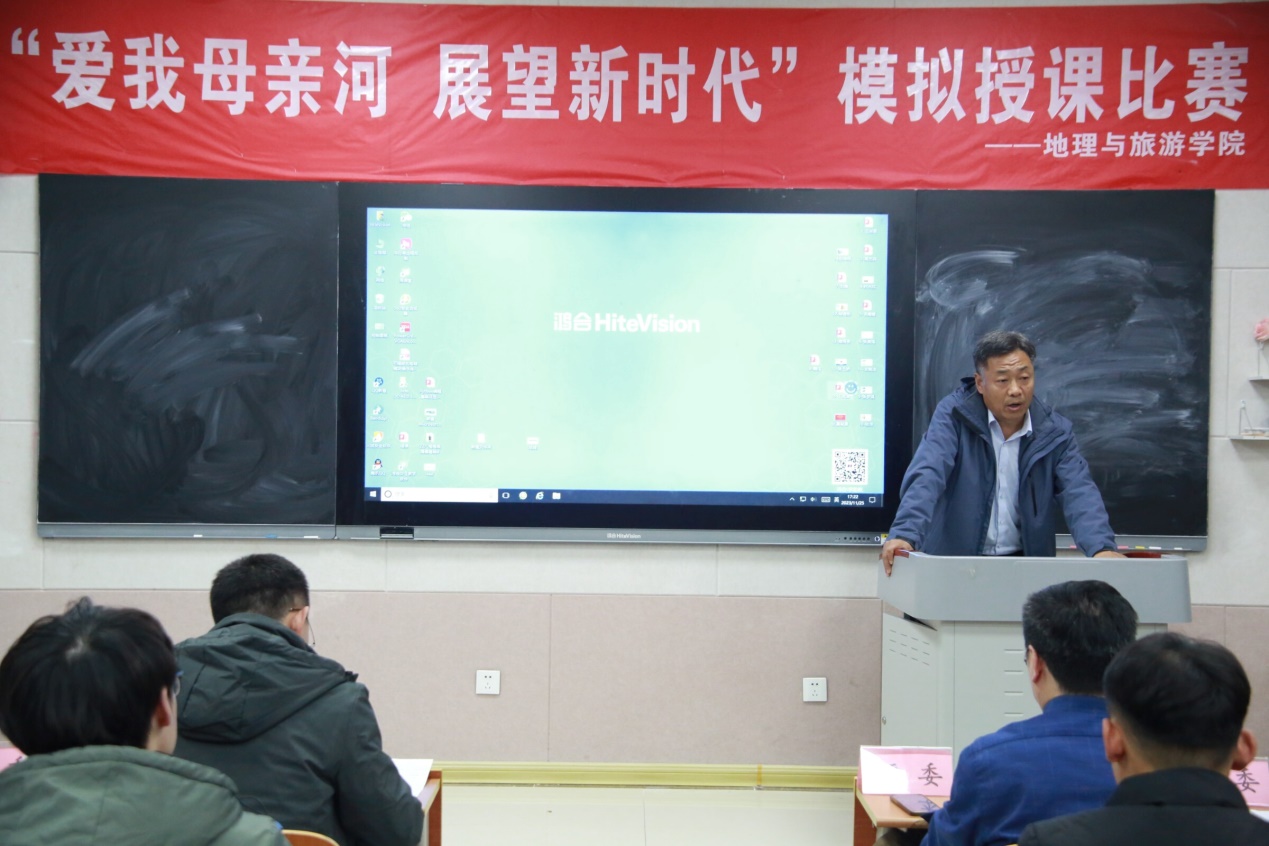 在S205举办了“爱我母亲河,展望新时代”模拟授课比赛。学院党委书记苏占兵出席并讲话,学院副院长于伟、学院教学督导及教职工党支部书记刘志刚、学科教学(地理)专业学位点负责人吕宜平以及刘庆果、蔡利平等老师担任此次比赛的评委。刘银秋、田文主持本次比赛,2023级学科教学(地理)、地理学、职业技术教育等专业的同学观看了比赛。