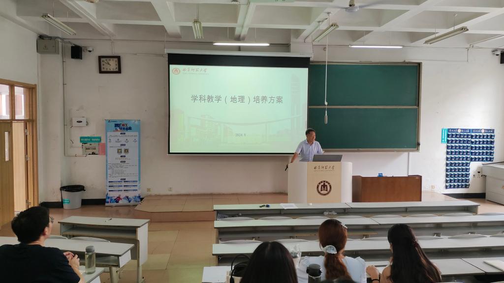 会上,吕宜平副教授以其深厚的专业底蕴和丰富的教学经验,为新生们详细剖析了培养方案的每一个细节。他首先带领大家回顾了学院及学科教学(地理)专业的发展历程,展示了强大的师资力量和卓越的办学成果。随后,吕老师从培养目标、学制安排、培养方式、课程体系、专业实践、考核标准及学位论文要求等多个维度,对培养方案进行了全面而深入的解读,为新生们描绘了一幅清晰的学习蓝图。