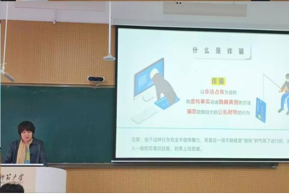 随后,赵岩老师结合学院实际情况,详细讲解宿舍安全、交通安全、实验室安全以及谨防网络诈骗等方面的知识。针对当前网络诈骗频发的现状,她详细讲解识别和防范网络诈骗的技巧,提醒学生们时刻保持警惕,保护好自己的个人信息和财产安全。