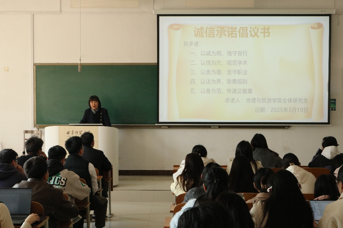 诚信教育不仅关乎学生个人的成长发展,更是校园文化建设的重要内容。通过此次班会,研究生们将诚信理念牢记于心,未来将以实际行动助力学院在学术研究、人才培养等方面持续进步,共同推进学院高质量发展。