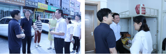 党委书记苏占兵、党委副书记刘伟、研究生辅导员赵岩与学院研究生会的同学们一同走访研究生新生宿舍,为大家送上问候。