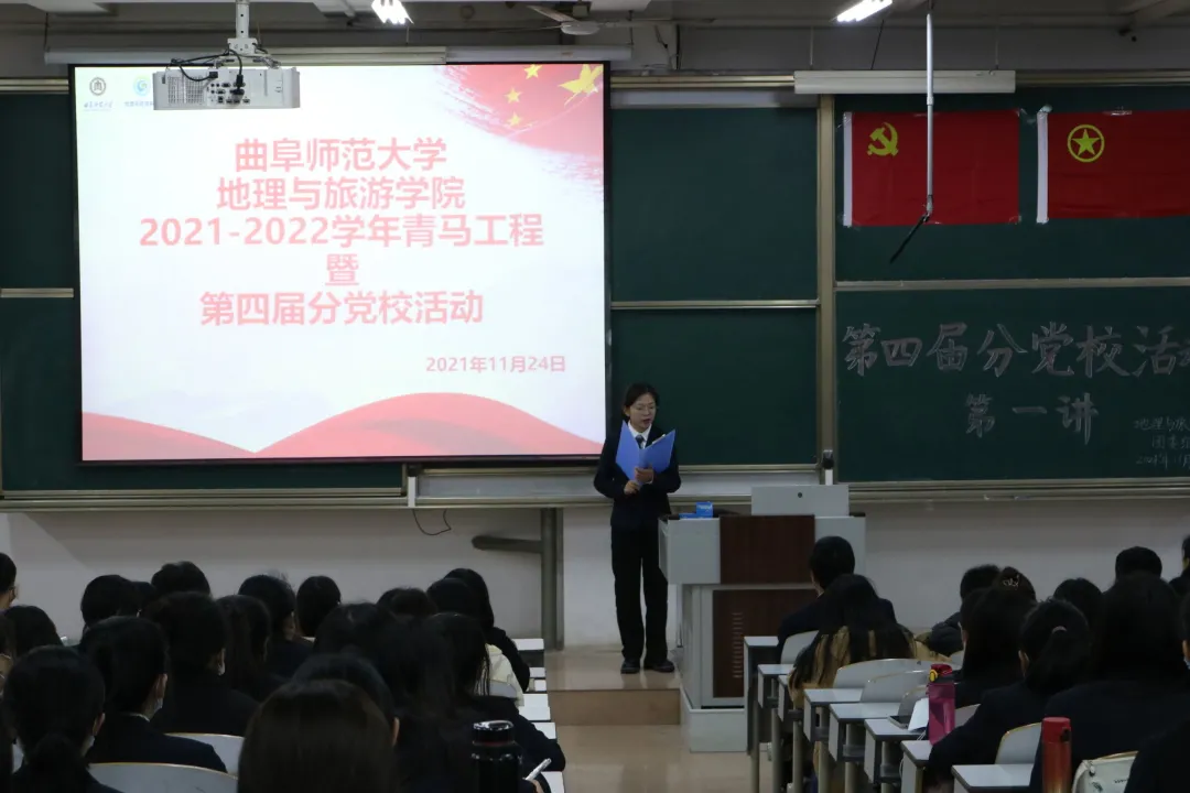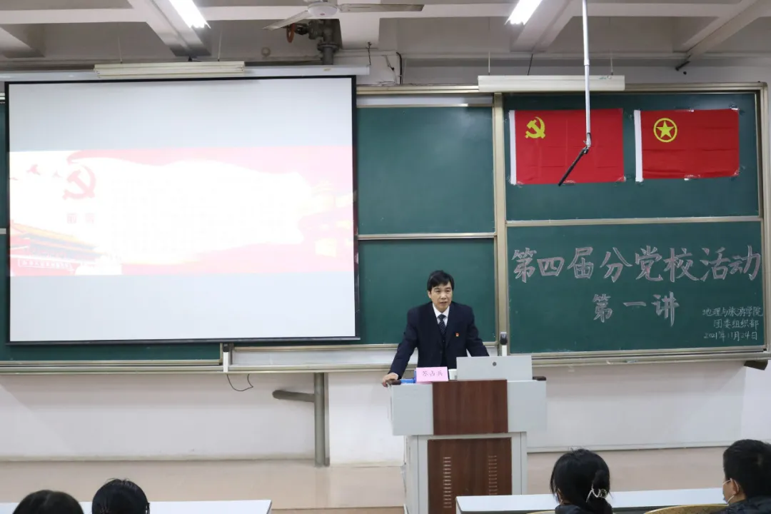 党委书记苏占兵主讲,2019级辅导员老师李梅主持,2020级入党积极分子及2021级班委参加。
