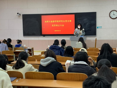 研究生党支部于S214教室举行党员转正大会。讨论审议刘凡、刘雪、李素素三位同志预备党员转正事宜。研究生党支部书记马振秀主持会议,党支部全体党员参加。