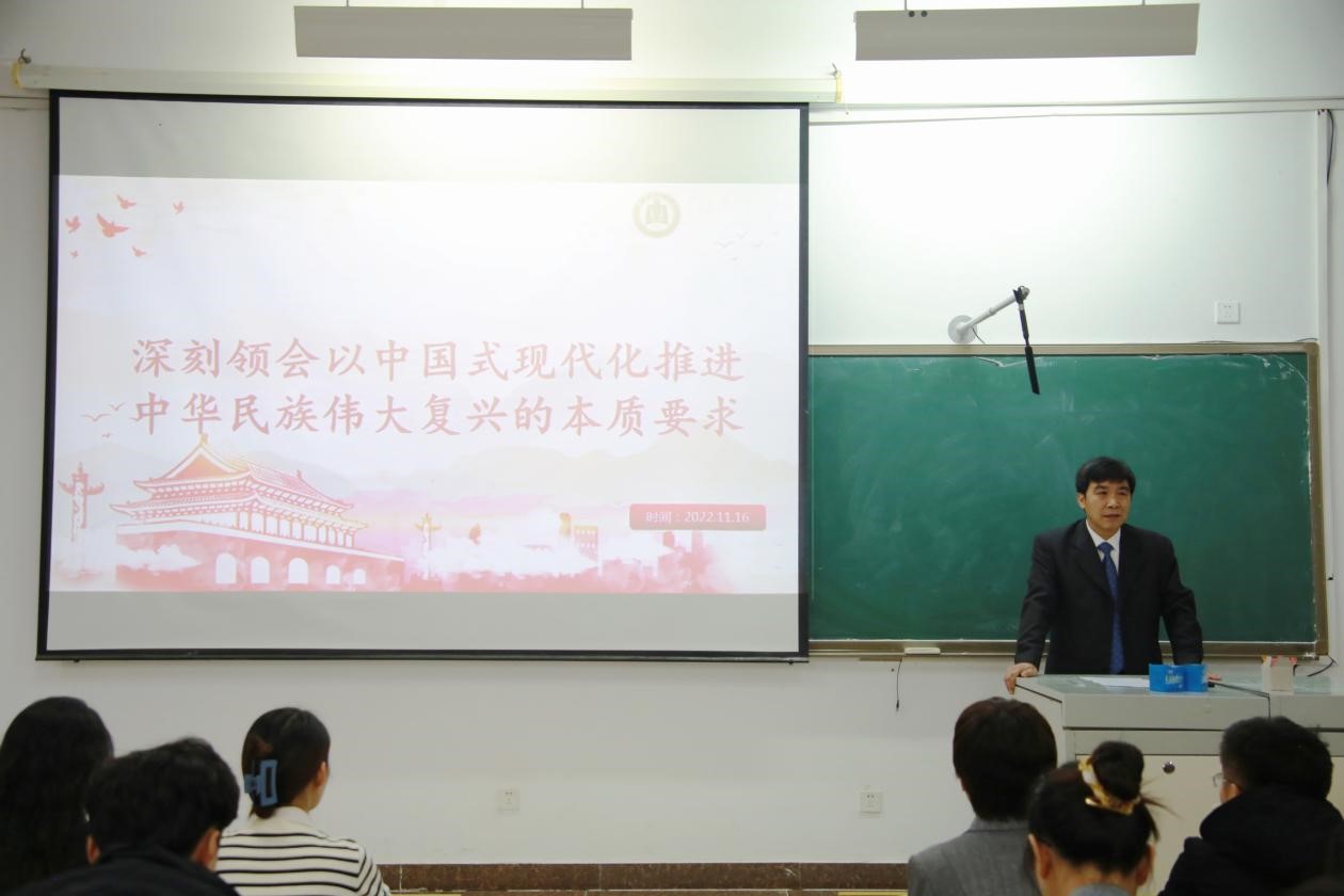 11月16日下午,学院党委书记苏占兵在S314教室为研究生全体党员宣讲党的二十大精神。