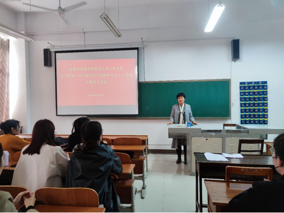 赵岩老师对本次活动进行总结。她强调,各位同志,要全面把握习近平新时代中国特色社会主义思想的科学体系,努力掌握这一思想的世界观、方法论和贯穿其中的立场观点方法,不断增进对党的创新理论的政治认同、思想认同、理论认同、情感认同,推动主题教育走深走实,为科教兴国战略贡献地理学子的智慧。