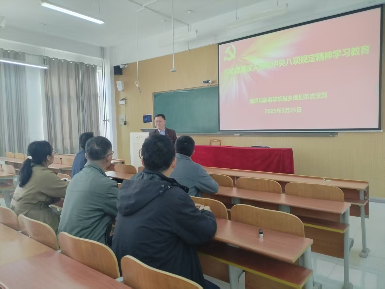 城乡规划系党支部在S楼314室开展“启动深入贯彻中央八项规定精神学习教育”主题党日活动。党支部书记刘志刚主持。