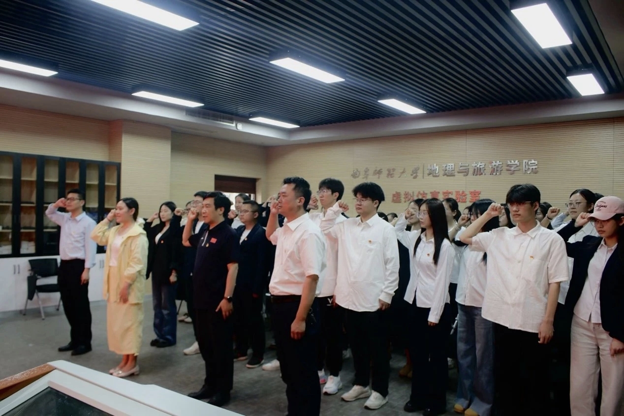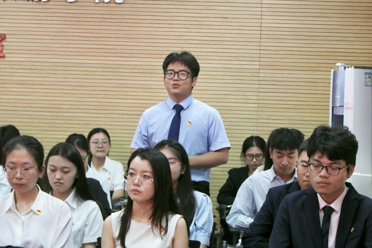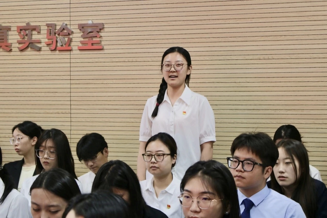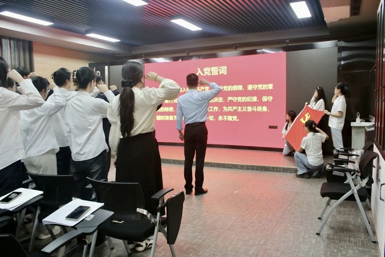 座谈会后,开展了重温一次入党誓词活动。全体党员面对鲜红党旗庄严宣誓:我志愿加入中国共产党,拥护党的纲领,遵守党的章程,履行党员义务,执行党的决定,严守党的纪律,保守党的秘密,对党忠诚,积极工作,为共产主义奋斗终身,随时准备为党和人民牺牲一切,永不叛党。这不仅是对初心的回望,更是勇担使命再出发。铮铮誓言激励毕业生党员无论投身科研、扎根基层还是服务社会,都要时刻以党员标准勇担时代重任,让青春在党和人民最需要的地方绽放光彩。
