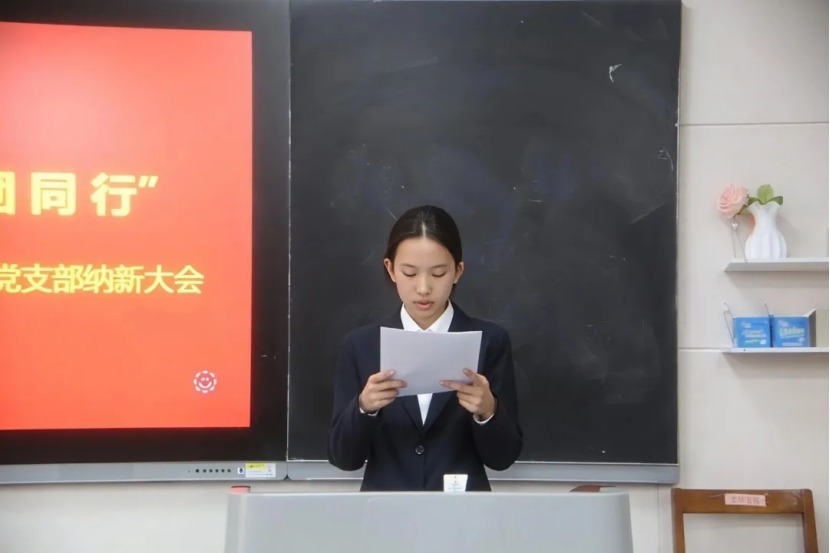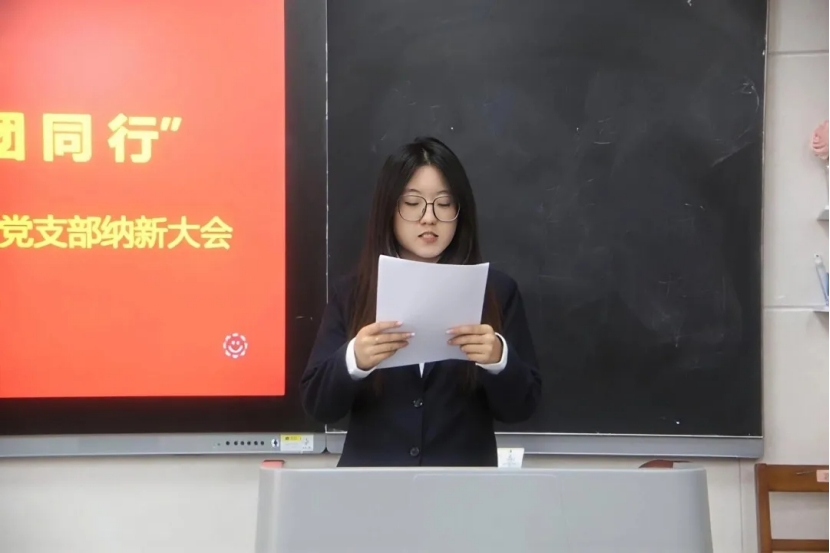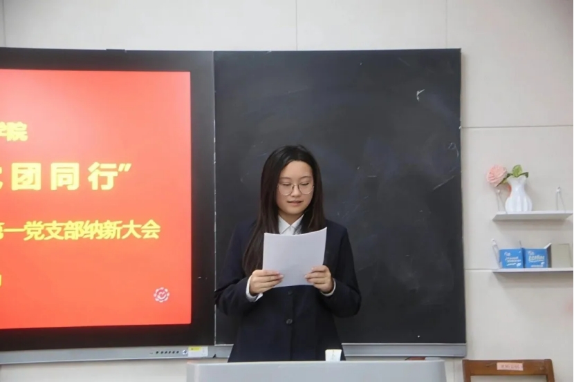 会议严格落实第一议题制度,田青带领全体党员和入党积极分子集中学习《中国共产党章程》第一章“党员”的相关内容。会议强调,全体党员要始终以党章为根本遵循和行动标尺,不断强化党员身份意识与政治自觉,模范履责行权,充分发挥党员先锋模范作用。随后,韩沁馨等10名发展对象依次向大会汇报个人基本情况、对党的认识、入党动机、现实表现以及需要向党组织说明的问题。党支部组织委员李梅代表支委会向大会报告对发展对象的政治审查情况。随后,入党介绍人分别对发展对象进行评价,并就其能否入党表明意见。宣传委员董青宣读投票结果,经与会党员充分讨论和无记名逐一投票表决,大会一致同意接收韩沁馨等10名同志为中共预备党员。预备党员逐一表态发言,他们表示将以党员身份为新起点,严守党章规定,在学习工作中勇挑重担,以实际行动践行入党誓言。