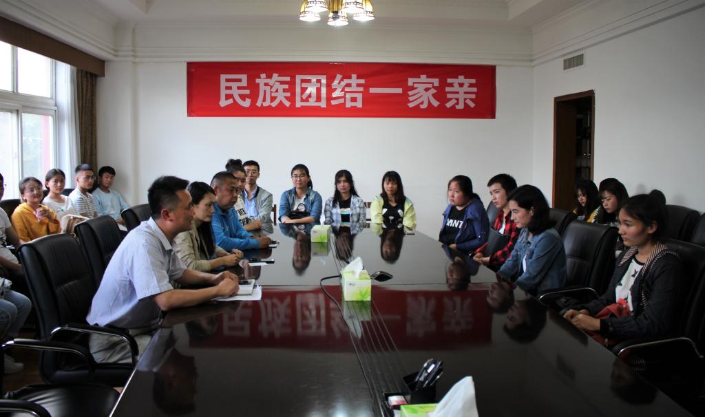 党委副书记刘伟主持,党委书记胡长春、团委书记宁晓文、新疆内派服务管理教师加尔肯·吐尔逊出席,少数民族学生参加。