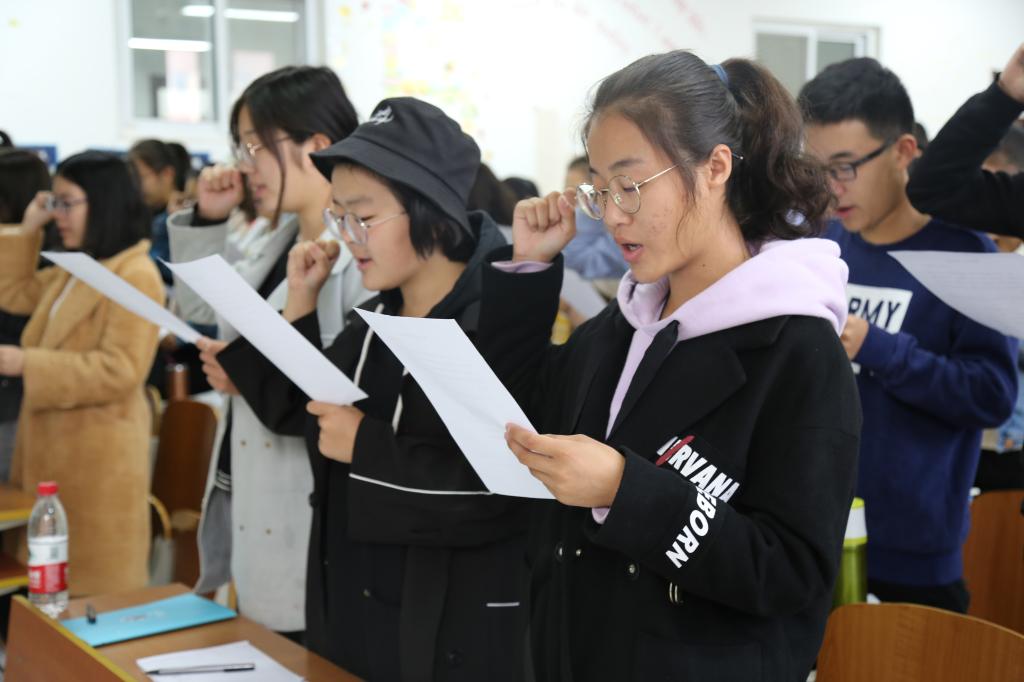 学风建设中来。紧接着,各班纪检委员带领全体同学宣誓。同学们在洪亮的宣誓声中立下严于律己的坚定志愿,并在宣誓书上签名。在接下来的系列活动中,各班将以手抄报、照片等形式对本班学风建设成果进行总结,学院根据平时老师对课堂表现的评价、纪检部检查结果,对表现优秀的班级和个人进行表彰。