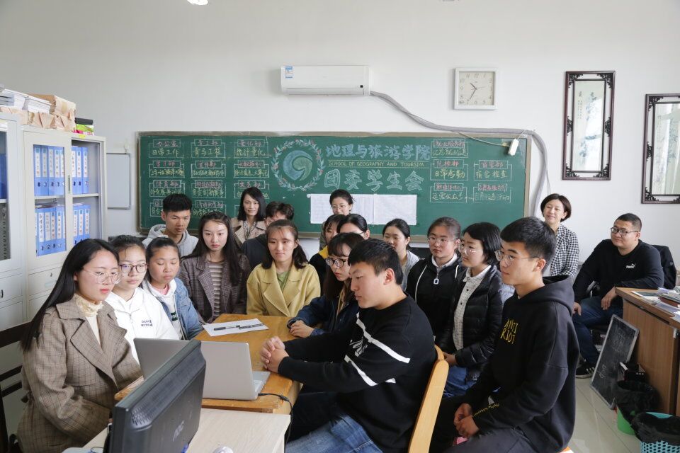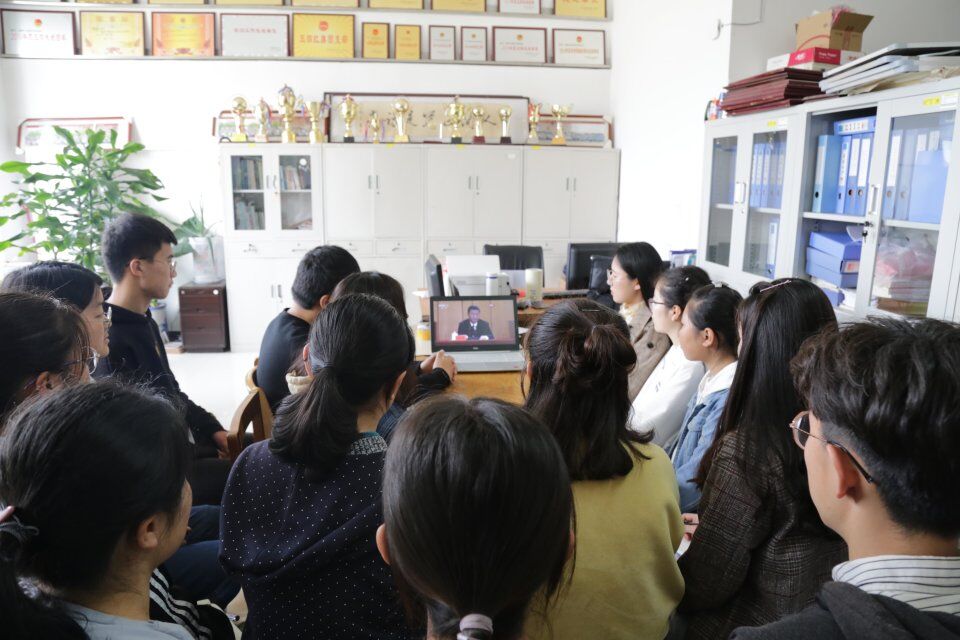 于4月30日在s208组织观看五四运动100周年大会直播。学院团委书记兼2018级辅导员宁晓文、2015级辅导员李梅、2016级辅导员陈鑫、2017级辅导员刘翔及学生干部集体观看。