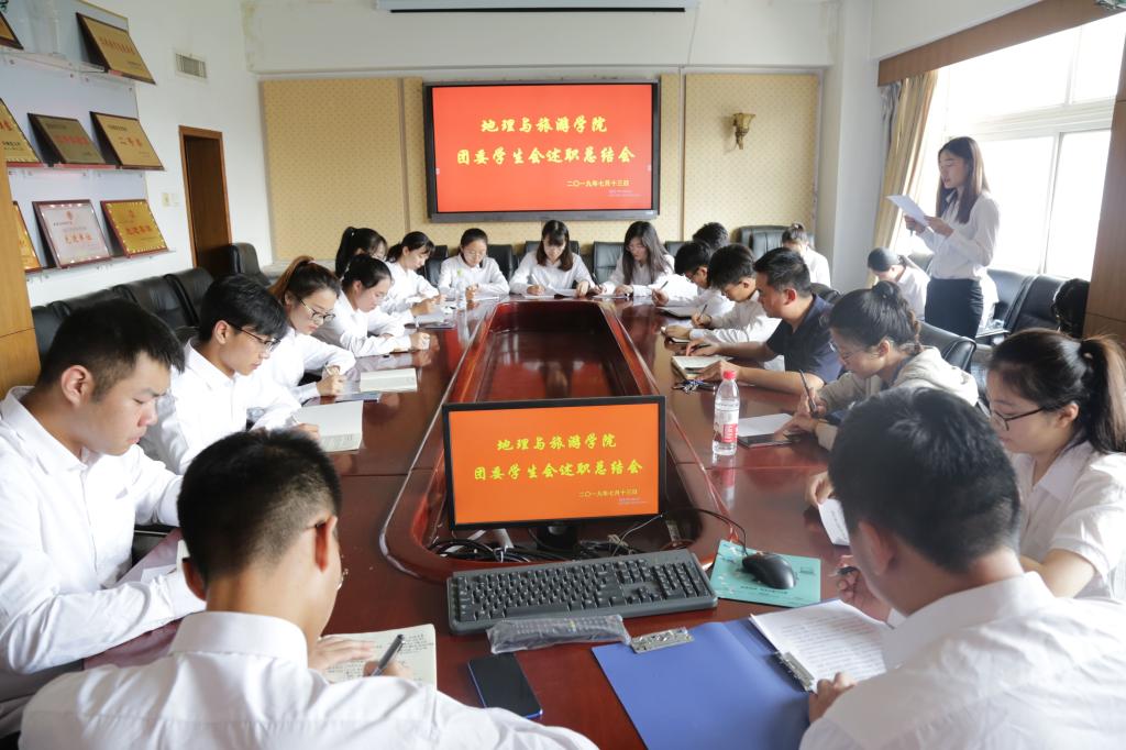 于2401会议室召开2019届团委学生会述职总结会。党委副书记刘伟、2017级辅导员刘翔出席,主席团全体成员及团委学生会各部门部长参加会议。