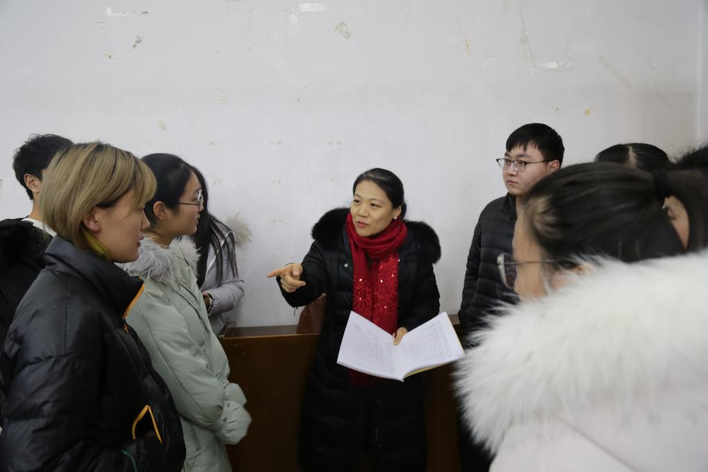 谭丽荣代表全体指导教师发言,她表示作为指导教师必将严格按照实习培养方案规定的教学任务认真指导每一位学生,对学生指出课堂教学中的优缺点和改进意见,使同学们在此次实习中有所收获。