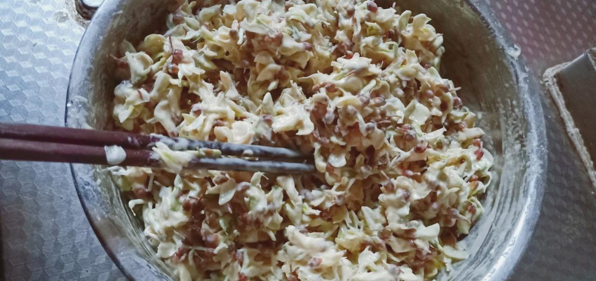 把剩余的槐花裹着面烙成一张张饼的过程中,那清香仍旧未散,反而渐浓。咬在口中,软软的,有种淡淡的清香在口中散开,我与家人吃着大自然馈赠的美食,相互说着话,不一会就被分食完毕。