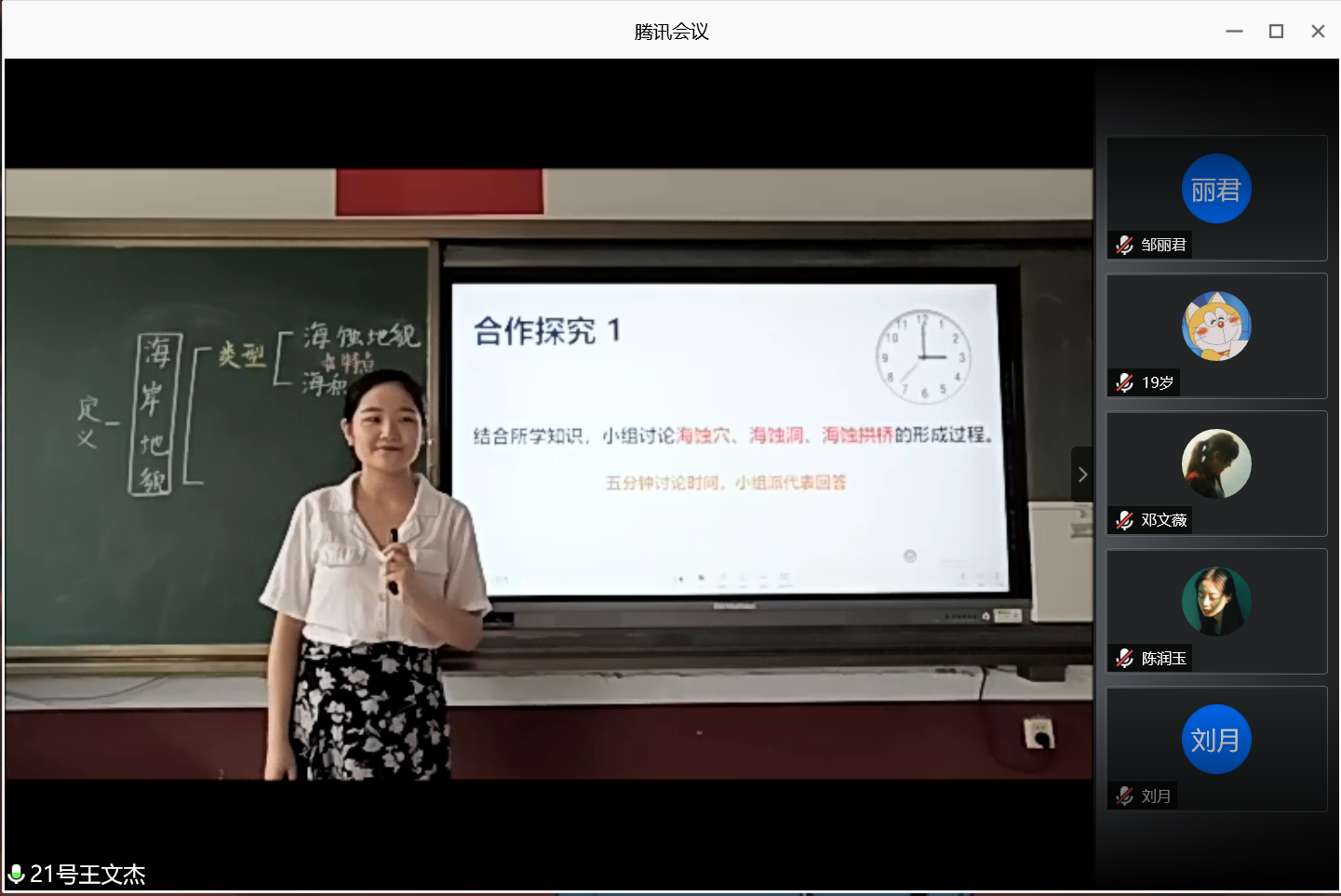 副院长吴军全程出席本次比赛,武传震、孙丕苓两位老师现场监督观看了本次比赛,教育实习指导教师和2017级地理师范生通过腾讯会议观摩了比赛。