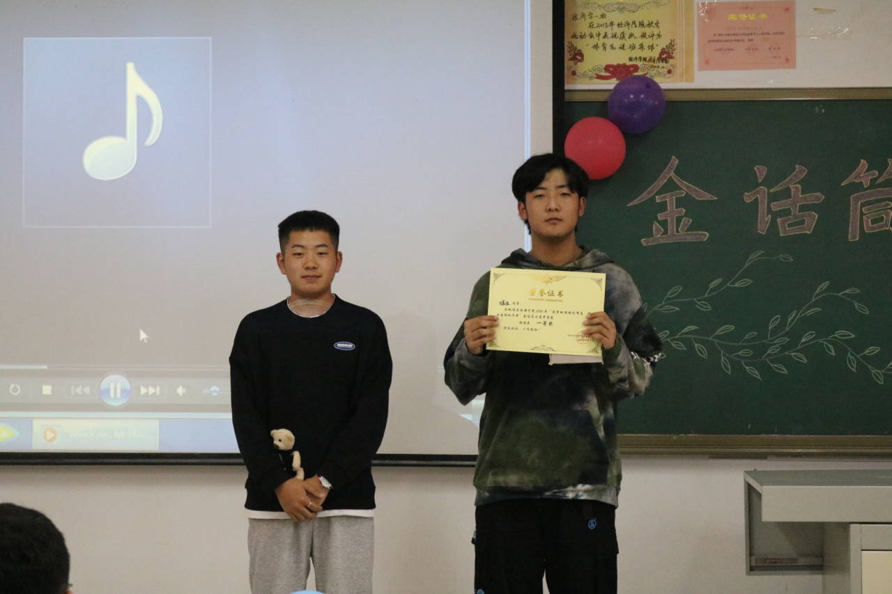 本次大赛分为主持场和歌唱场两个场次。主持场包括自我介绍、个人朗诵、晚会主持三个环节,参赛选手着装得体、落落大方,演讲时吐字清晰标准,语调抑扬顿挫,充分体现自身良好的组织表达能力和独特的主持风采,赢得现场观众热烈掌声。歌唱场包括个人表演、即兴清唱两个环节,参赛选手精神饱满,表演流畅自然,用歌声完美地诠释着自己随机抽中的汉字,展现出自身敏捷的应变能力和良好的歌唱功底。大赛期间,文艺小组李翼展、杨璐、田嘉恒、毛璇、于洪源、王宏宇、张迅为现场观众献上歌舞表演、歌唱表演及说唱表演,其曼妙的舞姿、动人的歌声为观众带来一场视听盛宴。