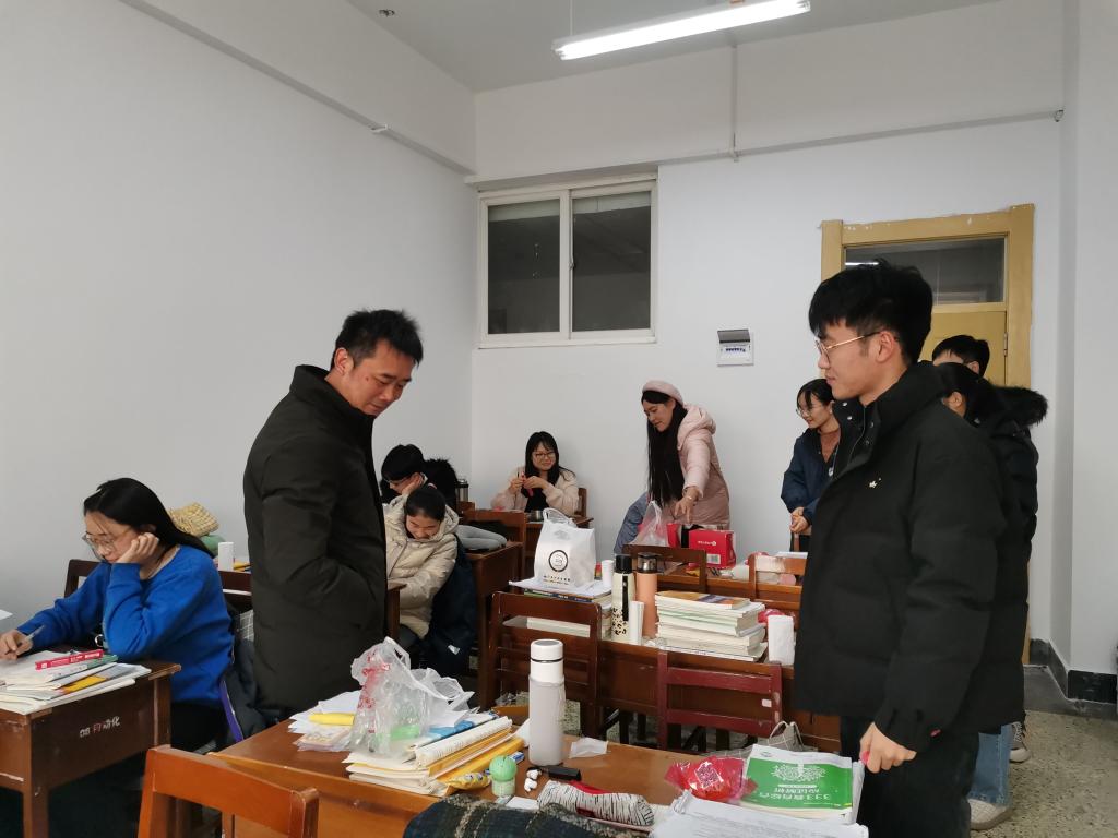 党委副书记刘伟、2017级辅导员董青亲临考研教室,为即将考试的学子送去温暖与祝福。