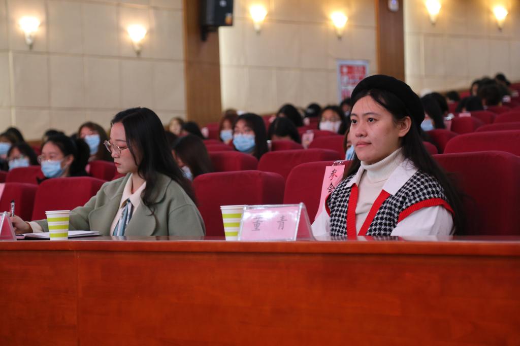 2017级辅导员董青,2020级辅导员张乃宁出席讲座,2020级全体女生参加。