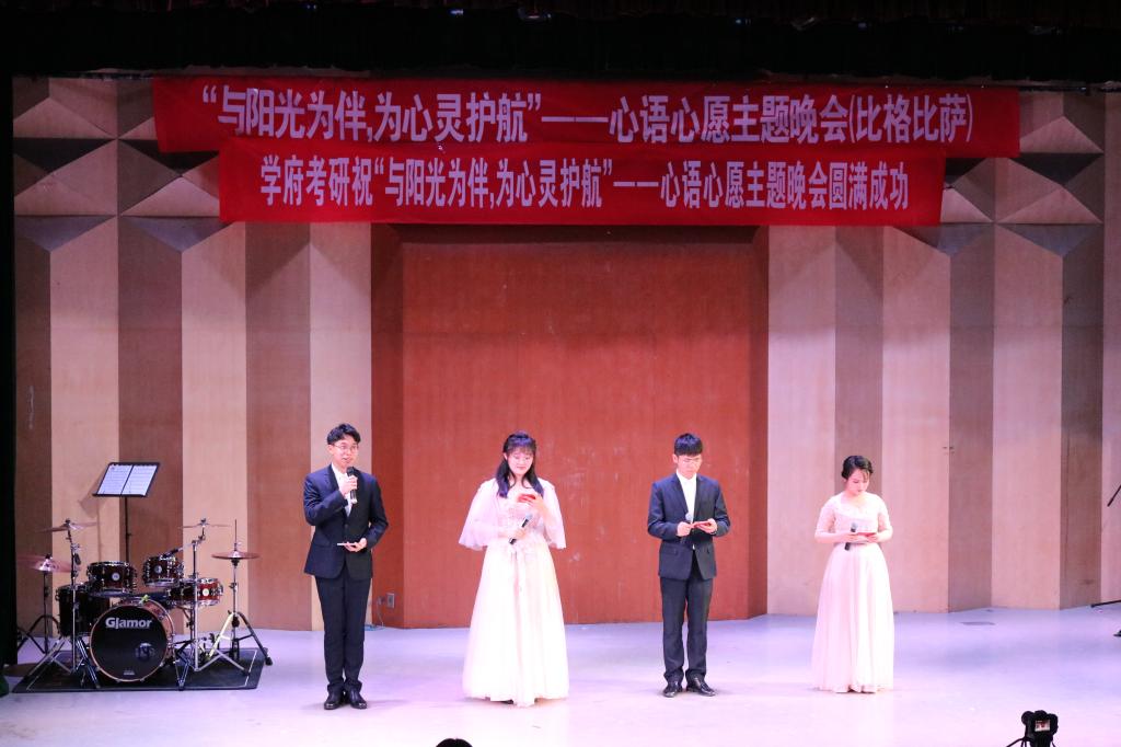心理健康指导中心主办,各学院心理健康部联合承办的“与阳光相伴,为心灵护航”——心语心愿主题晚会于音乐厅顺利举行。麻豆在线