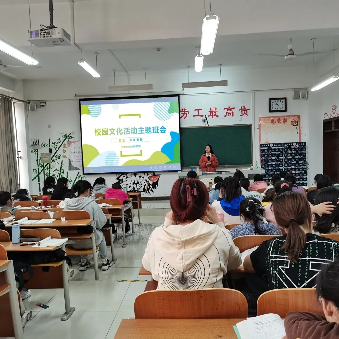 各班相继召开校园文化活动暨五一假期安排主题班会。班会由各年级辅导员主持。