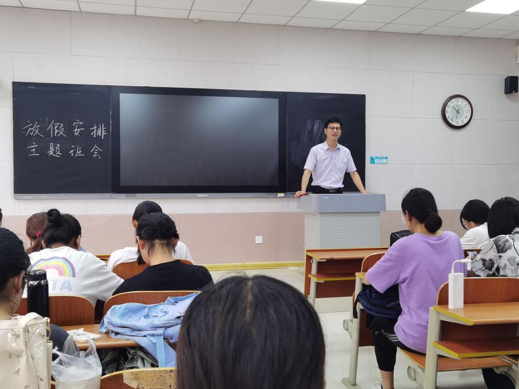 会上,辅导员老师从疫情防控、人身安全、财产安全、交通安全、防火、防汛、防溺水、防盗、防电信诈骗、防传销、反邪教等方面,向同学们讲解了假期的各项安全知识。在宿舍安全方面,老师提醒同学们要严格遵守公寓中心的各项规定,使用有品质保证的正规插排,注意人走电断,严禁使用违禁电器。网络安全尤为重要,大家假期离校返程期间更要防范电信诈骗和传销,远离网贷,不在随意扫码,不因贪图小便宜造成财产损失。班会上,老师详细说明了假期安排,强调了离校注意事项和居家疫情防控要求,坚持每日上报体温,配合好学校将防疫工作。希望全体同学妥善安排好暑假期间的学习和生活,珍惜时光,做好个人学业规划和职业规划,提升综合竞争力。
