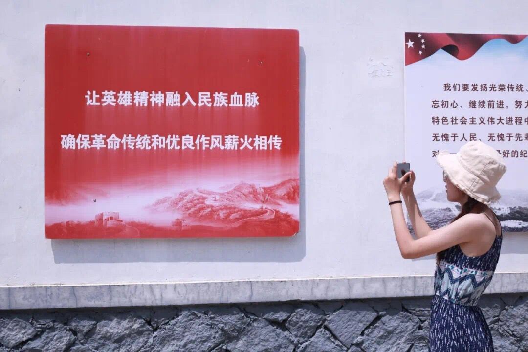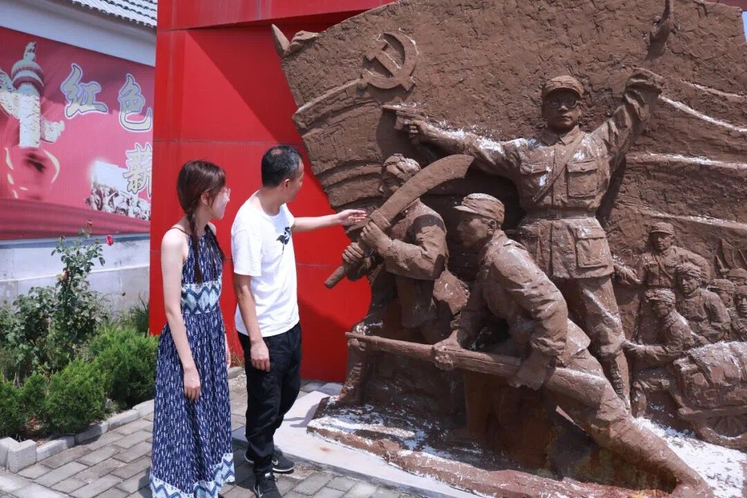 图为实践队员参观掖县共产党人共赴国难 保家卫国的浮雕