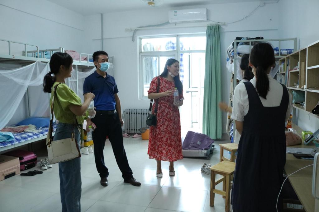 迎新工作如火如荼,一个个忙碌的身影,共同书写2021年迎新工作新篇章。为进一步了解新生入学适应状况,第一时间给予温暖关怀,提供“最优服务”,2021年9月11日,学院党委副书记刘伟、2020级辅导员张乃宁、2021级辅导员董青深入新生宿舍,走访慰问2021级研究生和本科生,与新生亲切交谈。
