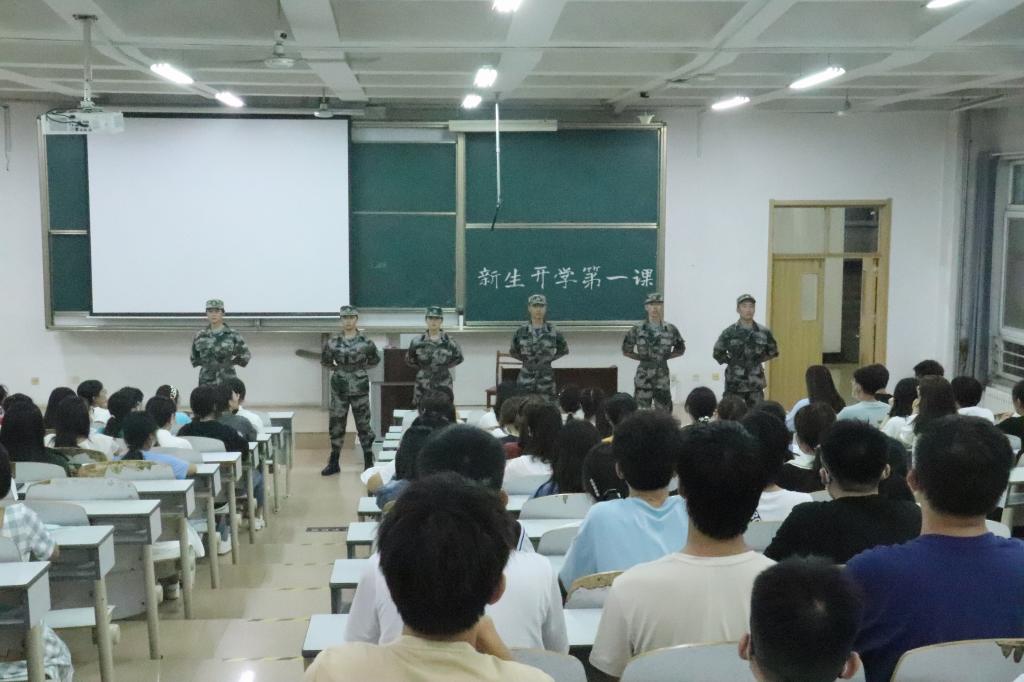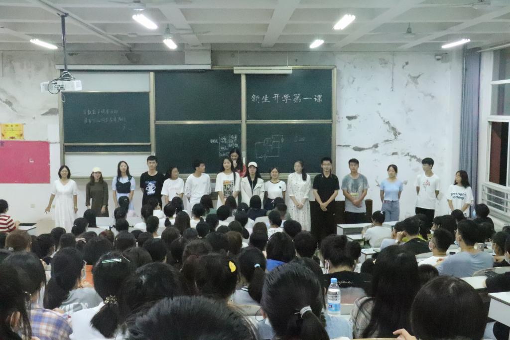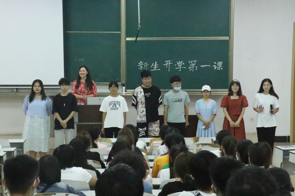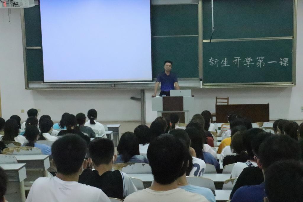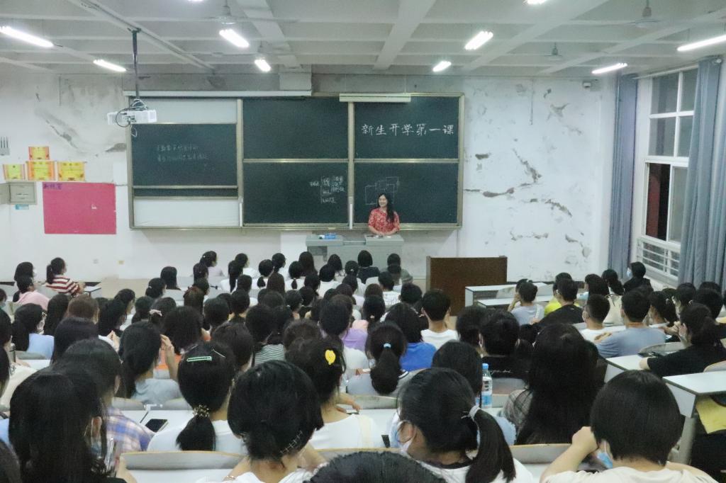 在E203、E204召开2021级新生开学第一课。2021级辅导员董青主讲,党委副书记刘伟出席。