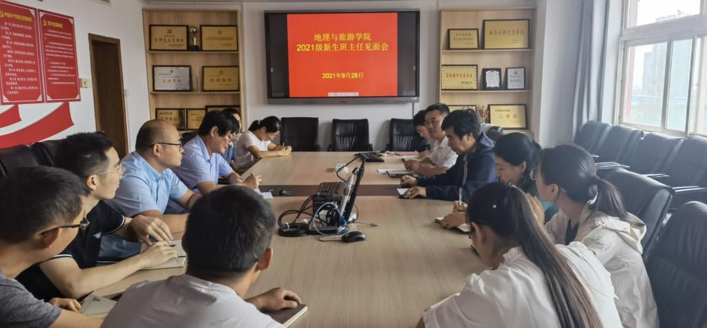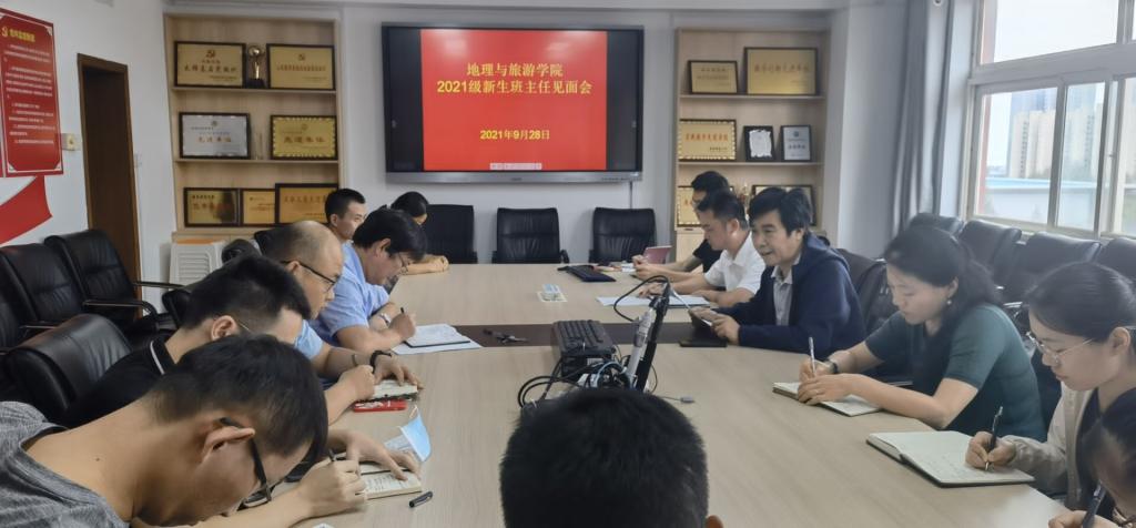 组织召开2021级新生班主任见面会。学院党委书记苏占兵、院长张全景、党委副书记刘伟、12位博士班主任孙晓芳、孟令冉、孟翔晨、蔡利平、陈艳锋、张学波、于深洋、汪瑶、邵莉莉、孙丕苓、徐凯、谭丽荣及2021级辅导员董青参加会议。