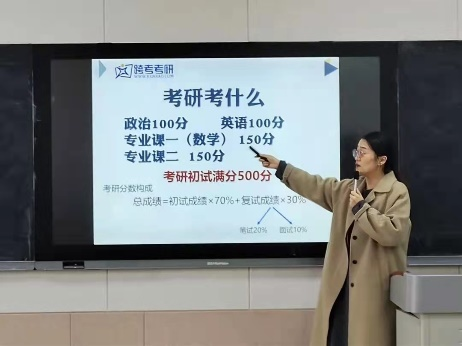 会议伊始,李梅就考研、考公、求职方面的问题与同学们进行了交流。她指出,在大三这个重要的时间节点,同学们要明晰自己的学业和职业目标,做出科学规划。本次班会旨在帮助同学们初步了解考研相关知识,开拓大家专业和学校选择的视野,化解考研备考路上的疑惑。对于明确要考研的同学,她就如何确定专业和报考院校给出了自己的建议。不管是报考本专业还是跨考,一定要梳理清楚自己的考研目标,找准定位积极备考,时刻保持良好的心理素质与身体素质。跨考考研的翟晓蕾、李萍老师基于考研报考大数据分析和多年的咨询经验,为同学们考研专业和学校选择进行了详细的分析讲解,分享了过往考研高分同学的学习经验,以及他们的学习经历。李萍指出,并非只有学习优秀的同学才有考研成功的可能,所有同学都有实现考研成功的美好愿望,激发了广大同学学习的动力。翟晓蕾老师运还对备考过程进行了全程规划,帮助同学们启动考研计划,并对同学们的提问进行了解答。