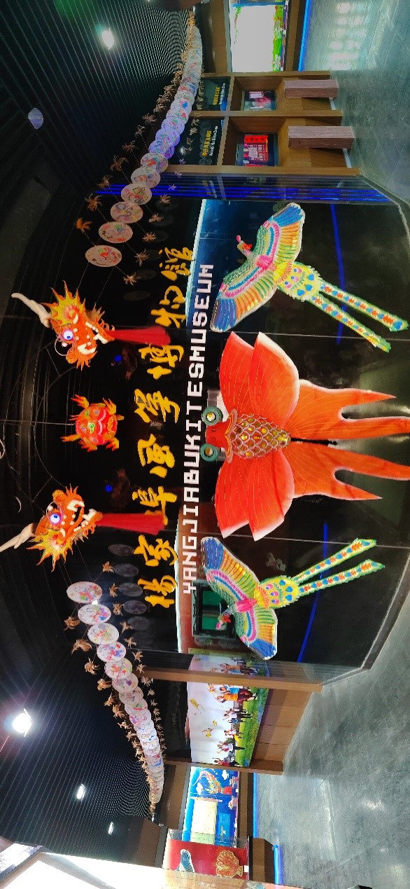 走进古色古香的园区,寻迹小队迎面撞上了杨家埠为了欢庆新年而准备的锣鼓队。队员们进到了杨家埠风筝博物馆。风筝作为潍坊市的城市名片,是闻名于世界的工艺品,每年都有很多人慕名前来欣赏潍坊风筝的精美。在杨家埠风筝博物馆里,寻迹小队欣赏到了各式各样的风筝;在惊艳于风筝美丽的同时,我们在展览墙上更是了解到了很多关于风筝的历史。