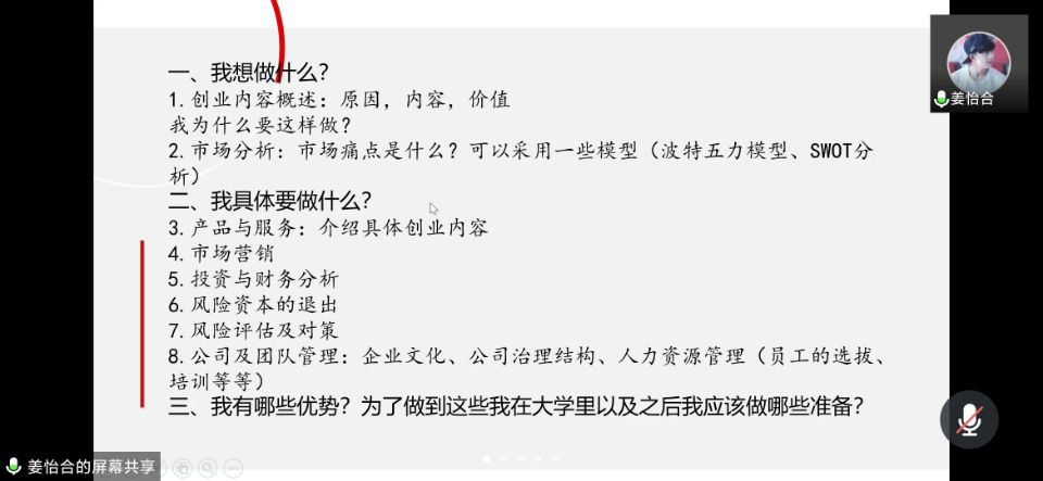 会上,田青对贾梦婷、陈文欣、姜怡合三人的分享表示感谢,并着重分析了职业生涯规划大赛是什么、职业生涯规划大赛赛什么以及职业生涯规划大赛重要吗三个问题。他指出本次比赛规格高、参赛人数少,鼓励大家积极参加;他希望大家积极备赛,认真撰写规划书,展现一个“不一样”的自己;他强调要按照赋分权重有所侧重个的展开讲解,以赛促练、以赛促学,通过参加比赛全面提升个人职业生涯规划能力。