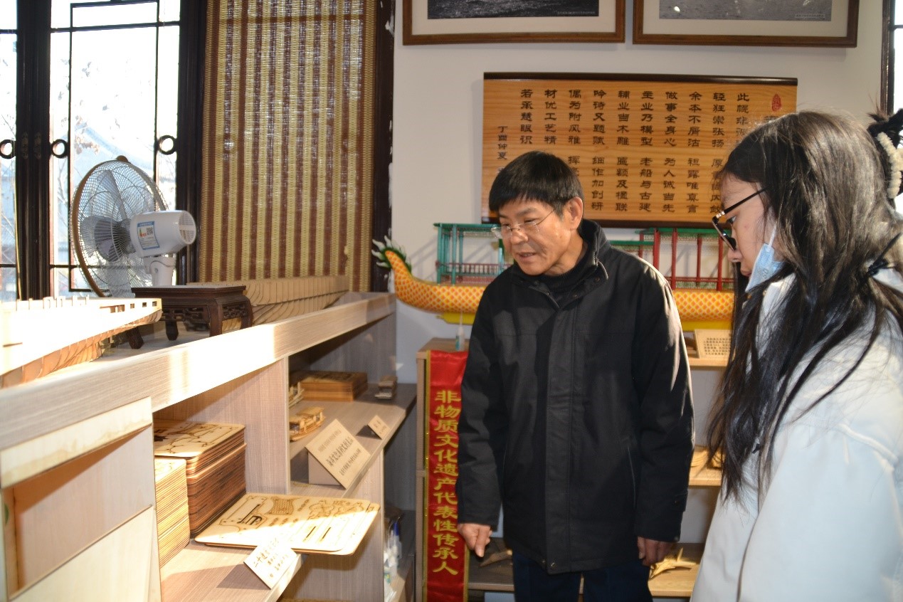 非遗探查小队前往威海市威高民俗文化邨,拜访了船模技艺传承人秦嗣安师傅。