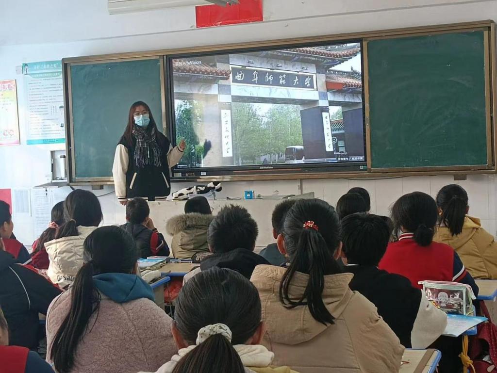 活动伊始,队员卢精华和王一栋首先针对初三学生进行实地采访调查,形成问题的针对性指向与解答系统。紧接着队员们与联系好的老师进行对接,在教室内开展曲师大宣讲活动,介绍曲师大的地理位置、文化底蕴、精神传承、优秀人才、招生政策以及曲师大与寿光二中与田柳初中在各个方面之间紧密的联系,宣讲会议上,演讲者积极提问引导,调动学生们的激情。宣讲结束后,同学们热情高涨,无比期待高中生活的拼搏与大学生活的自由奋斗,立下山无遮,海无拦的远大志向。活动期间,实践队与同学们开展了学习经验座谈会,展开文理全方位解答,座谈会上同学们积极提问,在好奇与期待中找寻学习的方法,学习的兴趣与学习的动力。最后,队员们在社会实践活动中发现了许多亟待解决的问题,如在“双减”政策下,乡镇学校的教学方法是否与时俱进;乡镇学校的师资力量与教学力量如何进一步改善;初中-高中-大学的桥梁如何更加坚固与顺畅等。为此,队员们成立典型问题研究小组,与初三学生合作探讨,除此之外,队员们与母校的老师交流讨论,收获颇丰,为进一步提高初高中升学率,培养社会高素质人才,挖掘曲师大潜在人才,宣传曲师大教学思想等奠定了基础。