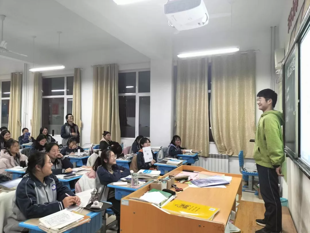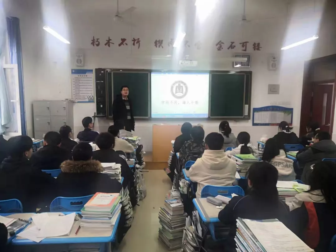 活动初期,队长卢精华提前搜集相关资料,在学院与招生办老师的统一指导下,结合各个网站与学生评价,制作宣讲PPT,同时也纳入了许多精美图片,包括曲师大周边的优美风景、举行校园活动时的视频、地理科学专业的日常学习、2021高考录取通知书等,同时也加入了各位队员提前准备好的师哥师姐鼓励高考加油的视频。为了活动更好地展开,队员们分别联系了寿光二中高三级部的赵老师与隋老师进行协助,在简单地叙述队伍母校行的目的后,赵老师深感欣慰,内心澎湃,表示自己作为曲师大的一员,深深感受到我们这一代人的蓬勃朝气与昂扬斗志,十分支持和赞成我们的活动。最后,我们将认真准备的课件交给班主任老师,由老师代替队员们完成曲师大的介绍工作。期间,队员们通过现场连线的方式进行解疑答惑。赵老师说:“日月不肯迟,四时相催迫”,在这个属于奋斗者的新时代,人人都有追梦的权利,人人也都是梦想的铸造者。队员们感同身受,将赵老师的话牢记心中,将它与曲师大精神相融合,指导我们更高层次的目标。
