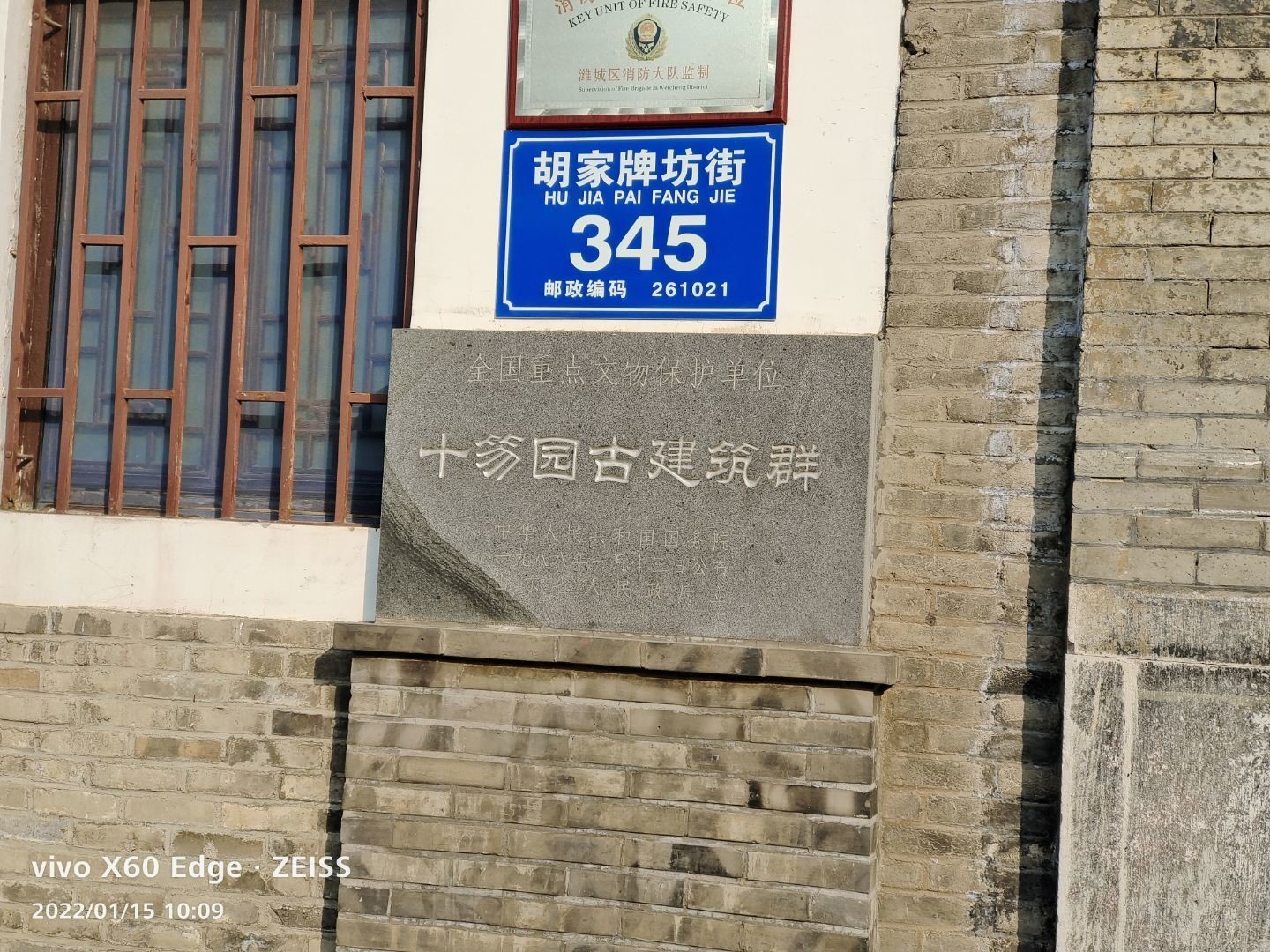 来到十笏园,与工作人员和与行人交流了解了十笏园的历史和它的建筑风格。十笏园的工作人员告诉我们十笏园为清光绪十一年(1885年),丁善宝购下明代刑部郎中胡邦依的故居,改建为私人花园,称“丁家花园”,后因其占地非常少,时人常喻之为“十个笏板”而被曹鸿勋题名为“十笏园”。十笏园虽然占地面积小,但其方寸之地可为百年的文化缩影。这一点在实践小队进入十笏园之后也深刻体会到了,我们观察到在其建筑风格上,十笏园既有北方园林的特点又有江南园林的自由风格,在文化遗存上,十笏园保留了郑板桥、金农等书画家的真迹碑刻。工作人员还告诉实践小队,十笏园的自身特色和它的文化价值使得它被国务院公布为第三批全国重点文物保护单位,并且在国家进一步加强非物质文化遗产保护工作号召下,现在的十笏园不仅保留了原有的遗迹,还融入了许多现代元素,与潍坊旅游业相结合,不断地绽放着生机。