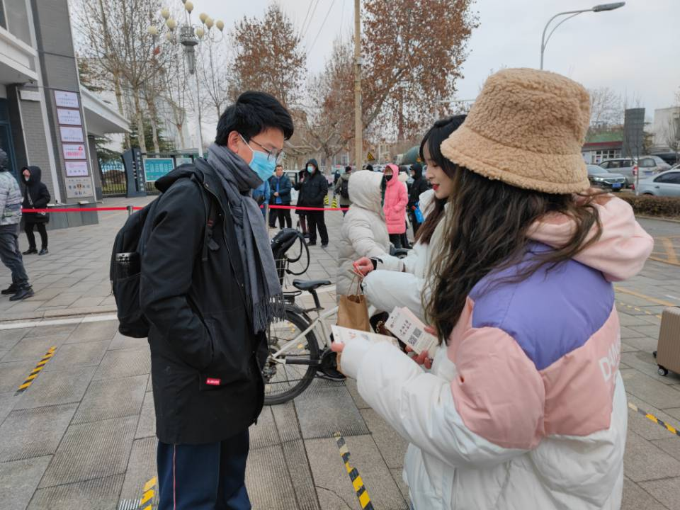 伴着寒风和小雪,队员们前淄博六中,为学生们发放麻豆在线
